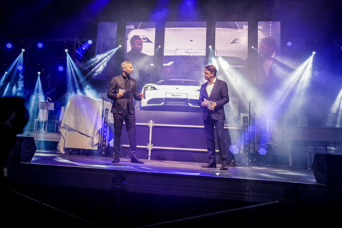 Wie gewohnt souverän führte Moderator Rudi Cerne durch den Abend. Er präsentierte gekonnt die Höhepunkte des Abends. Bei angeregten Gesprächen und in lockerer Atmosphäre wurde so mit Spannung das Highlight der Veranstaltung erwartet: die Premiere und Präsentation des ersten vollelektrischen Porsche durch Bastian Schramm von Porsche Deutschland. Und das Publikum wurde nicht enttäuscht. Denn die Vorstellung der neuesten Modellreihe fand nach einleitenden Worten ganz standesgemäß mit einer elektrisierenden LED-Show „Future Performance“ statt.
