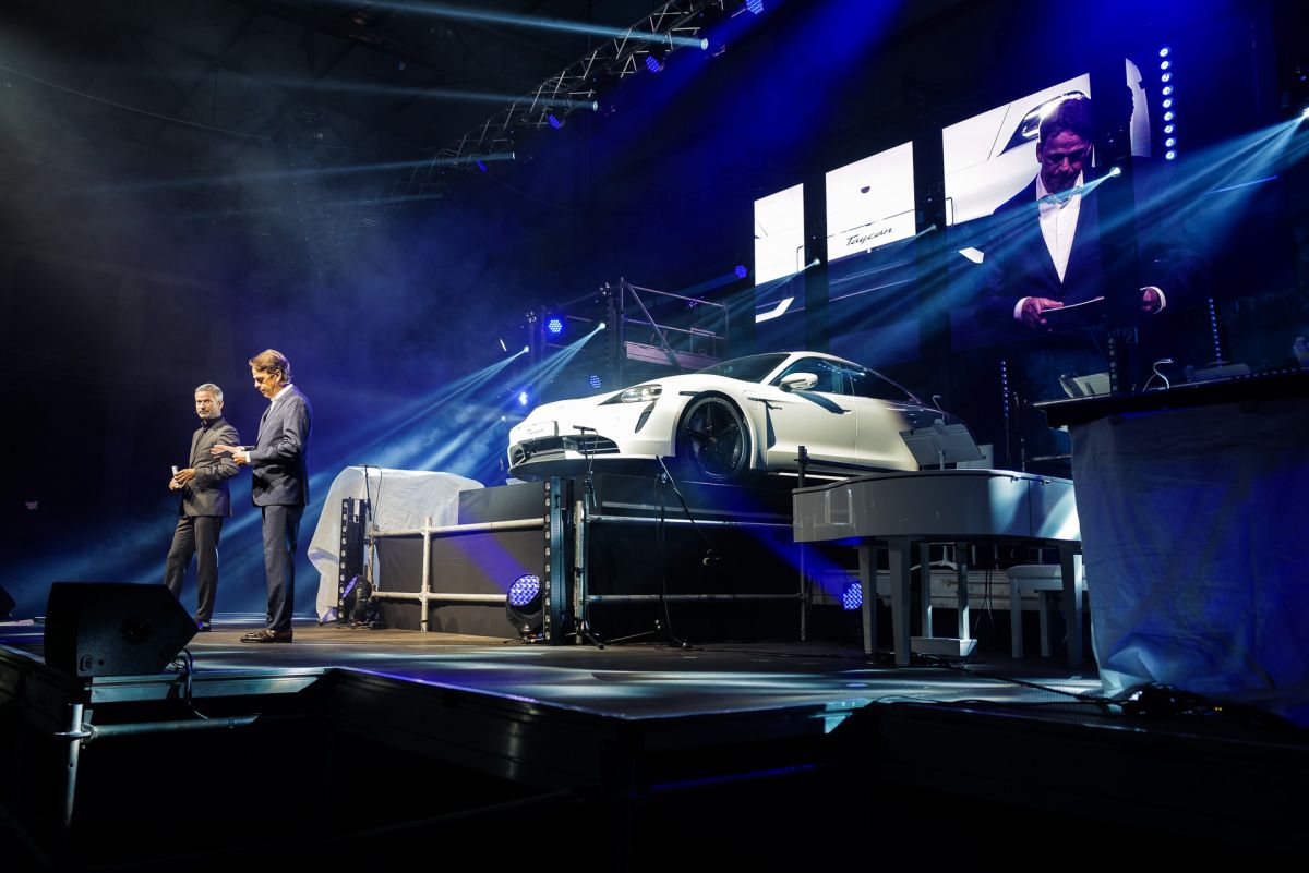 Die Taycan Präsentation elektrisiert 2000 Gäste in der „Alten Schmiedehalle“.