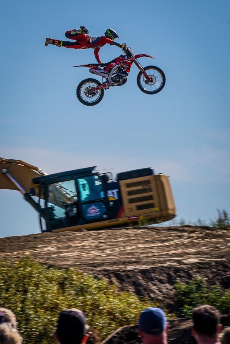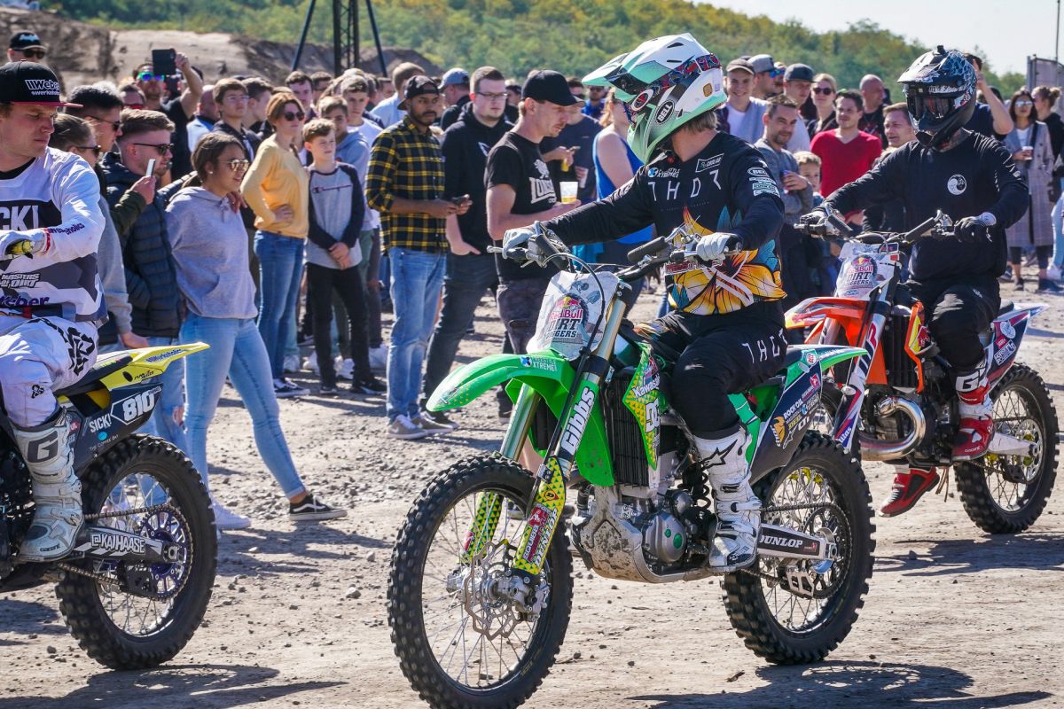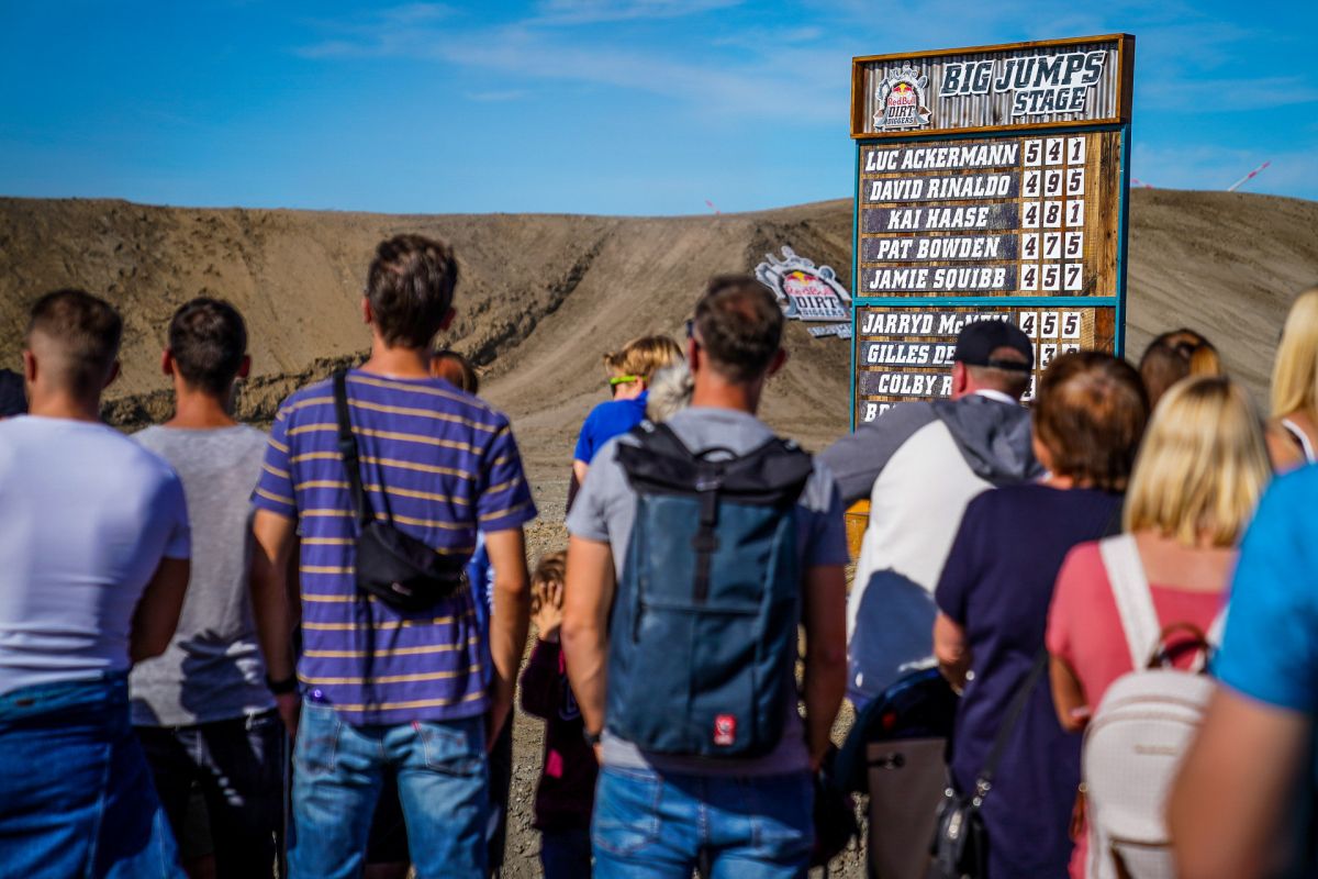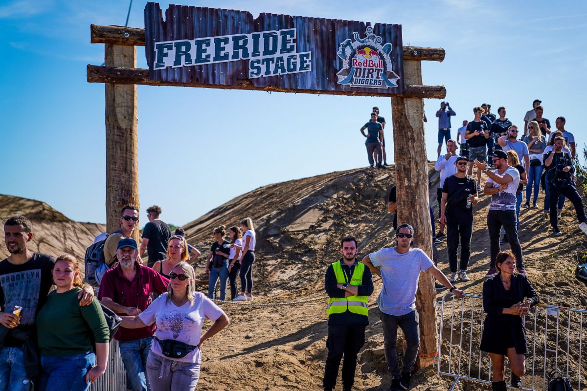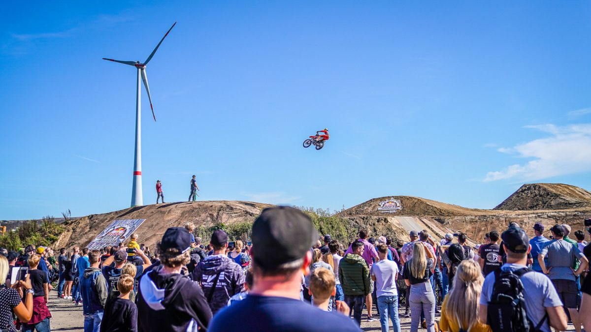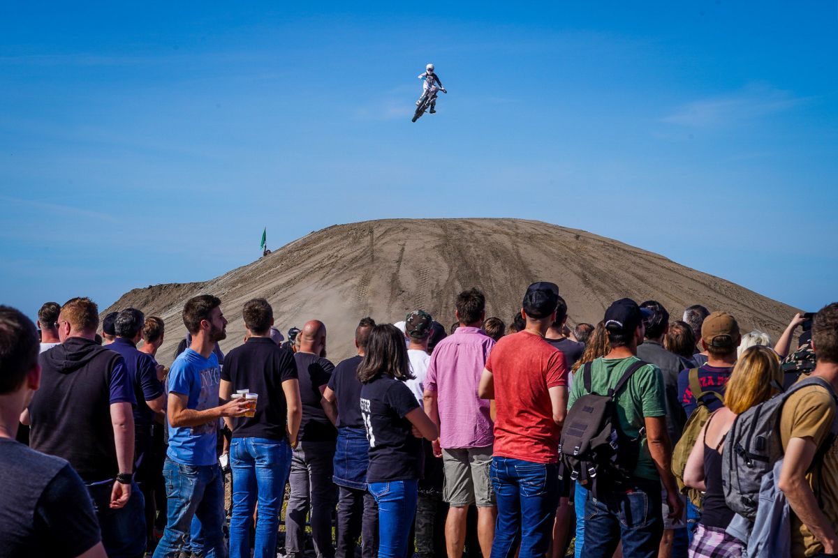 Am Rande der Halde entstehen zwei gigantische Sprünge mit einer Länge von bis zu 40 Metern, mit der auch Freestyle-Motocrosser ihre Freude haben. Die Fahrer sind hier durchaus lange und hoch in der Luft. Genug Zeit also, um krasse Trick-Kombinationen zu zeigen. Dass hier die Freeride-Fahrer aus Übersee, die aufgrund ihrer fantastischen Trainingsmöglichkeiten solche Sprungdistanzen gewohnt sind, brillieren, ist zwar wahrscheinlich, aber noch lange nicht festgelegt.