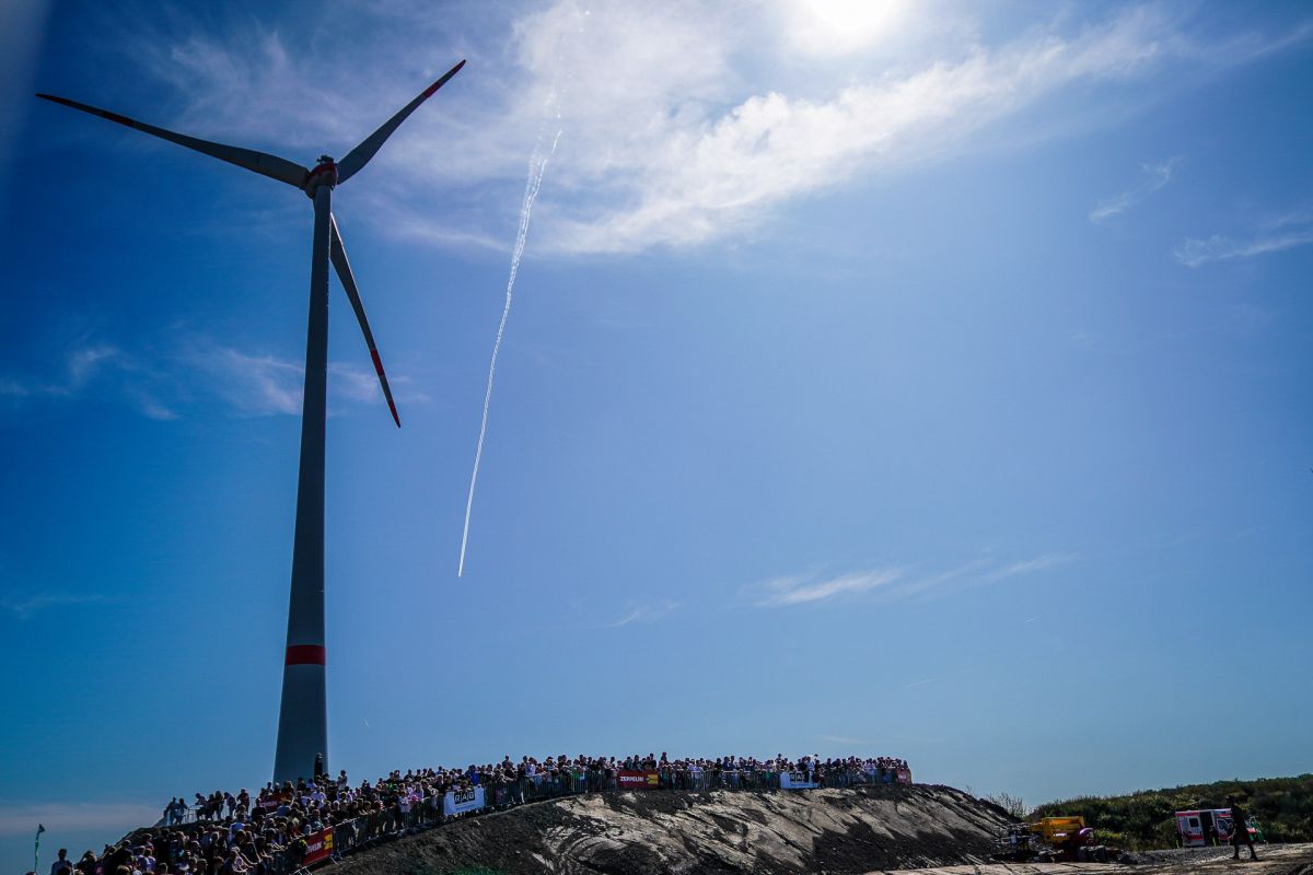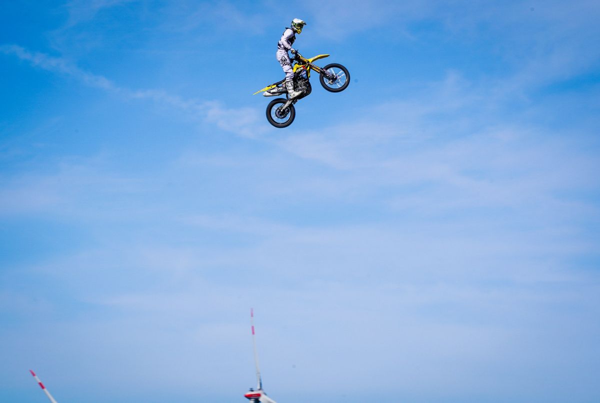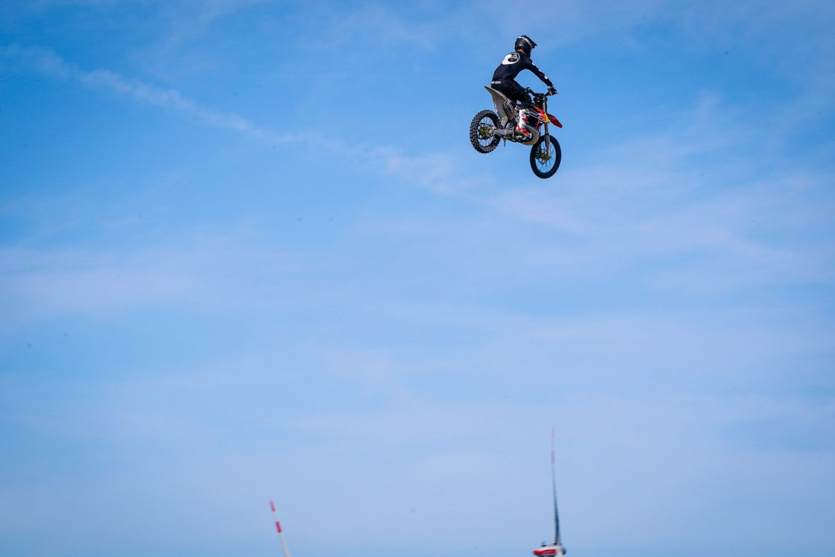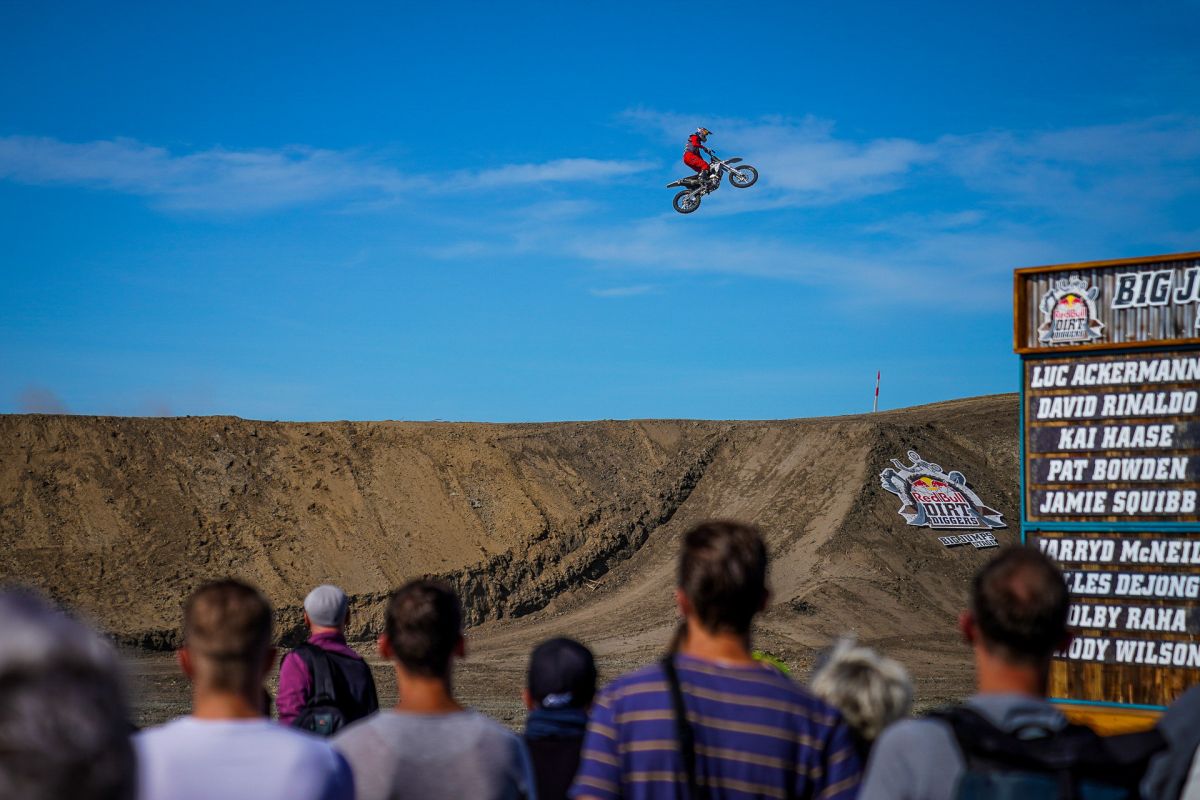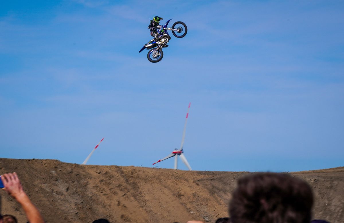 Am Rande der Halde entstehen zwei gigantische Sprünge mit einer Länge von bis zu 40 Metern, mit der auch Freestyle-Motocrosser ihre Freude haben. Die Fahrer sind hier durchaus lange und hoch in der Luft. Genug Zeit also, um krasse Trick-Kombinationen zu zeigen. Dass hier die Freeride-Fahrer aus Übersee, die aufgrund ihrer fantastischen Trainingsmöglichkeiten solche Sprungdistanzen gewohnt sind, brillieren, ist zwar wahrscheinlich, aber noch lange nicht festgelegt.