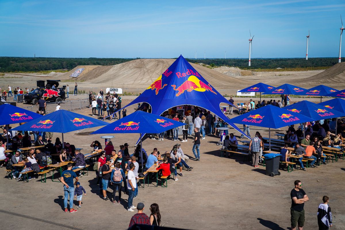 Sektion 2 „Compound“ − Freestyle MX-basiertHier haben die Freestyle-Motocross-Fahrer ihren fahrerischen Vorteil. Mitten auf der Halde entsteht ein riesiger, von den Fahrern mitgestalteter Dirtpark aus künstlichen Rampen und Dirthügel