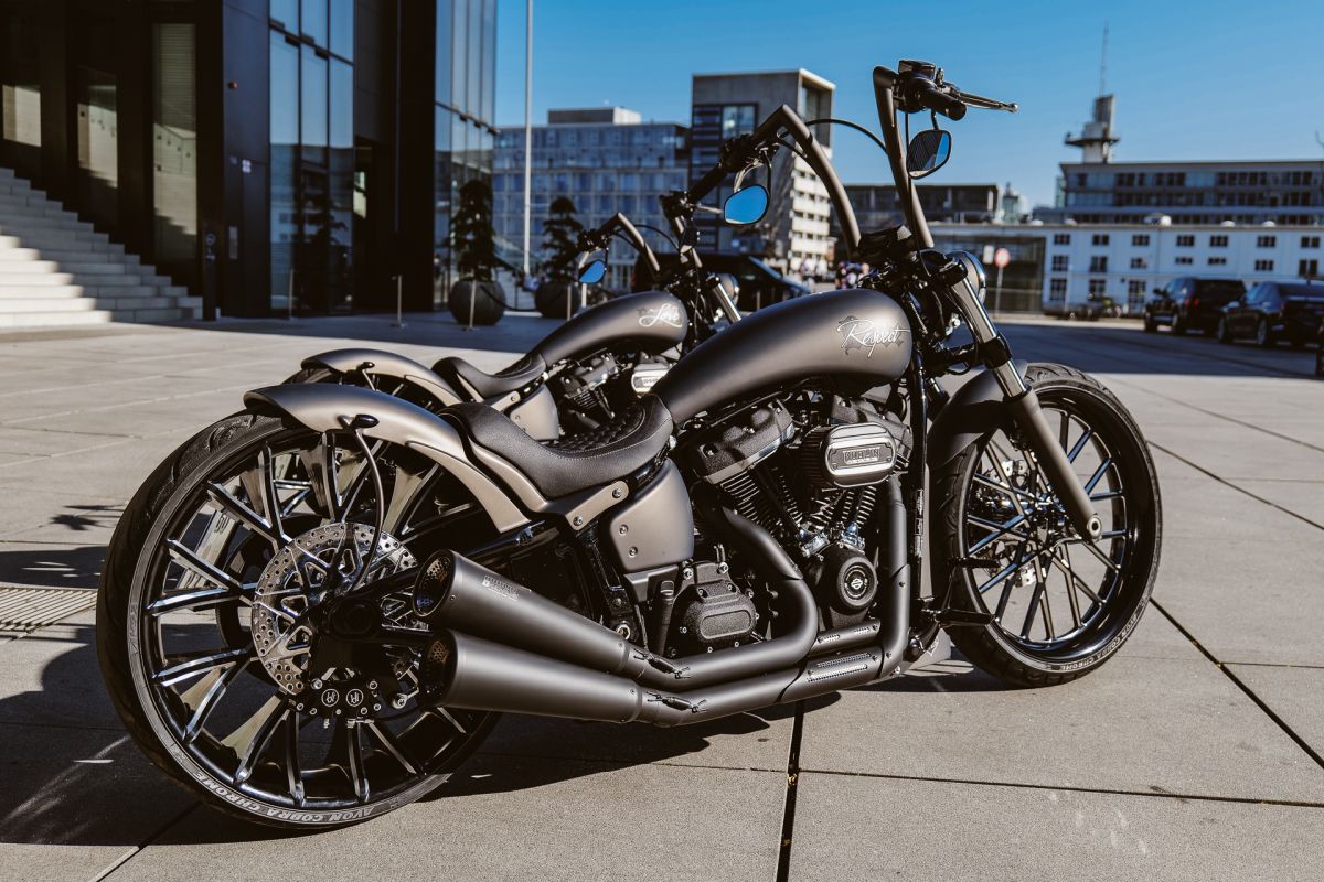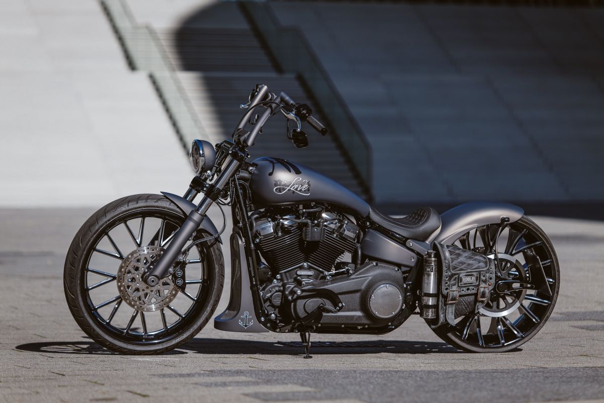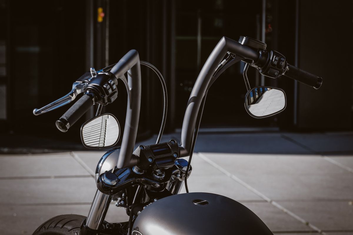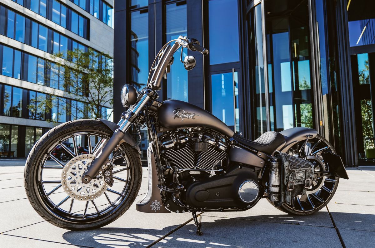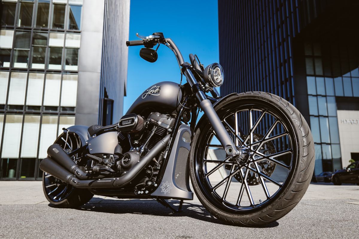“Love and Respect” are the name of these Street Bob custom bikes, that you would consider to be identical twins. There are some significant differences you will notice when looking closer at the bikes. “Respect” was treated with a serious engine upgrade. The Kodlin S&S 124” big bore monster they have been using on a lot of their builds. You can’t go wrong with engine displacement manufactured by the industries performance leader, finessed at the Kodlin Performance Center in Borken, Germany. “Respect” also features a rear air-ride suspension, the ultimate mark in combining look and riding quality, forward controls and a high Kodlin Flowbar.