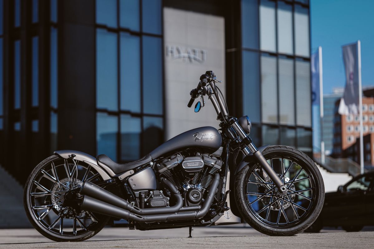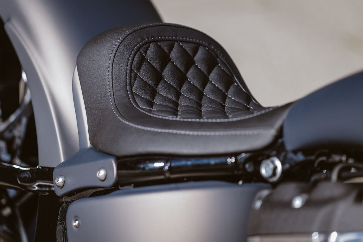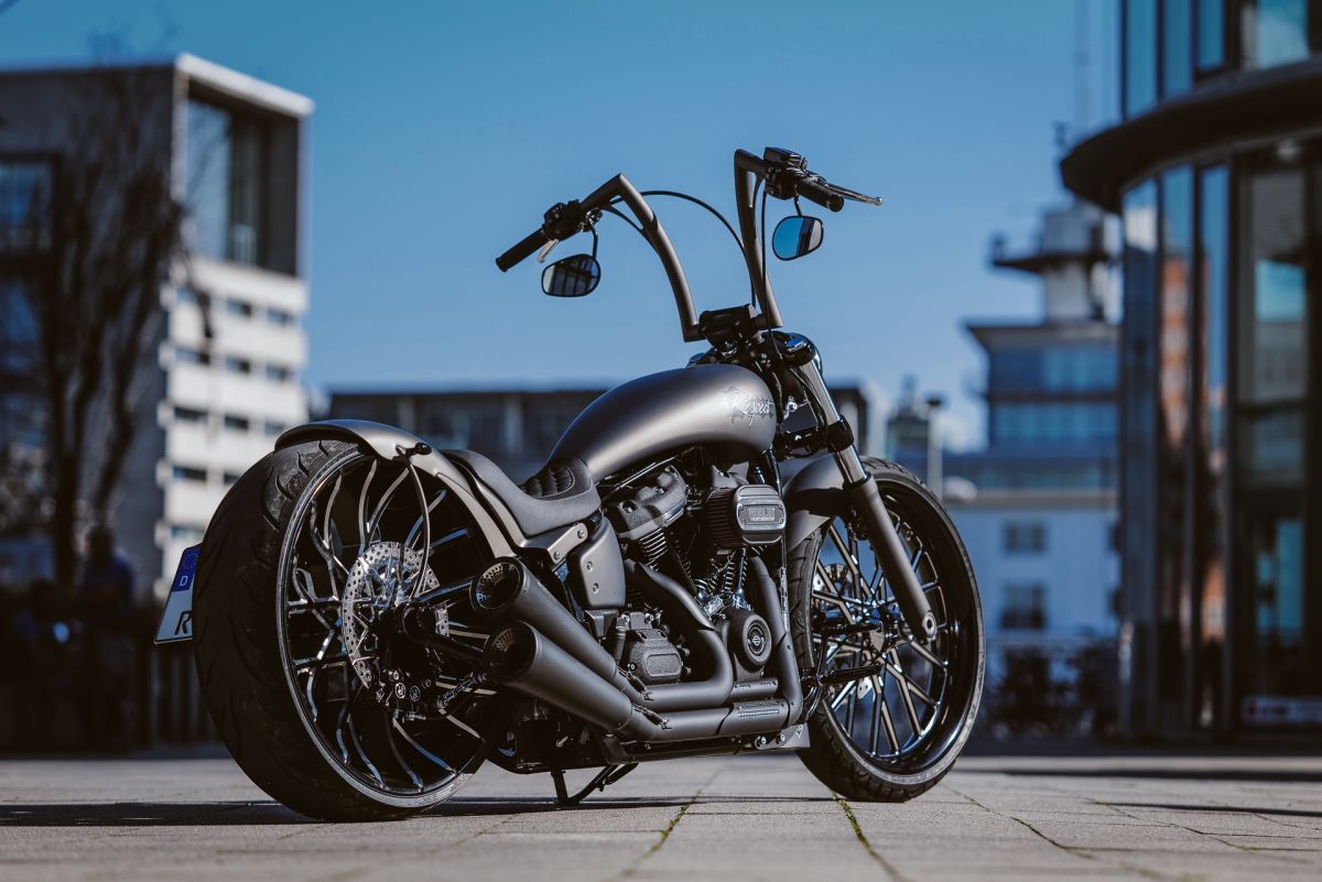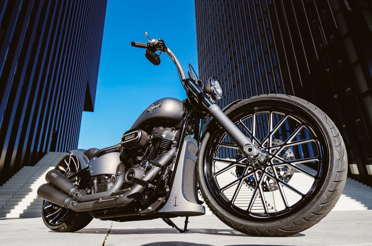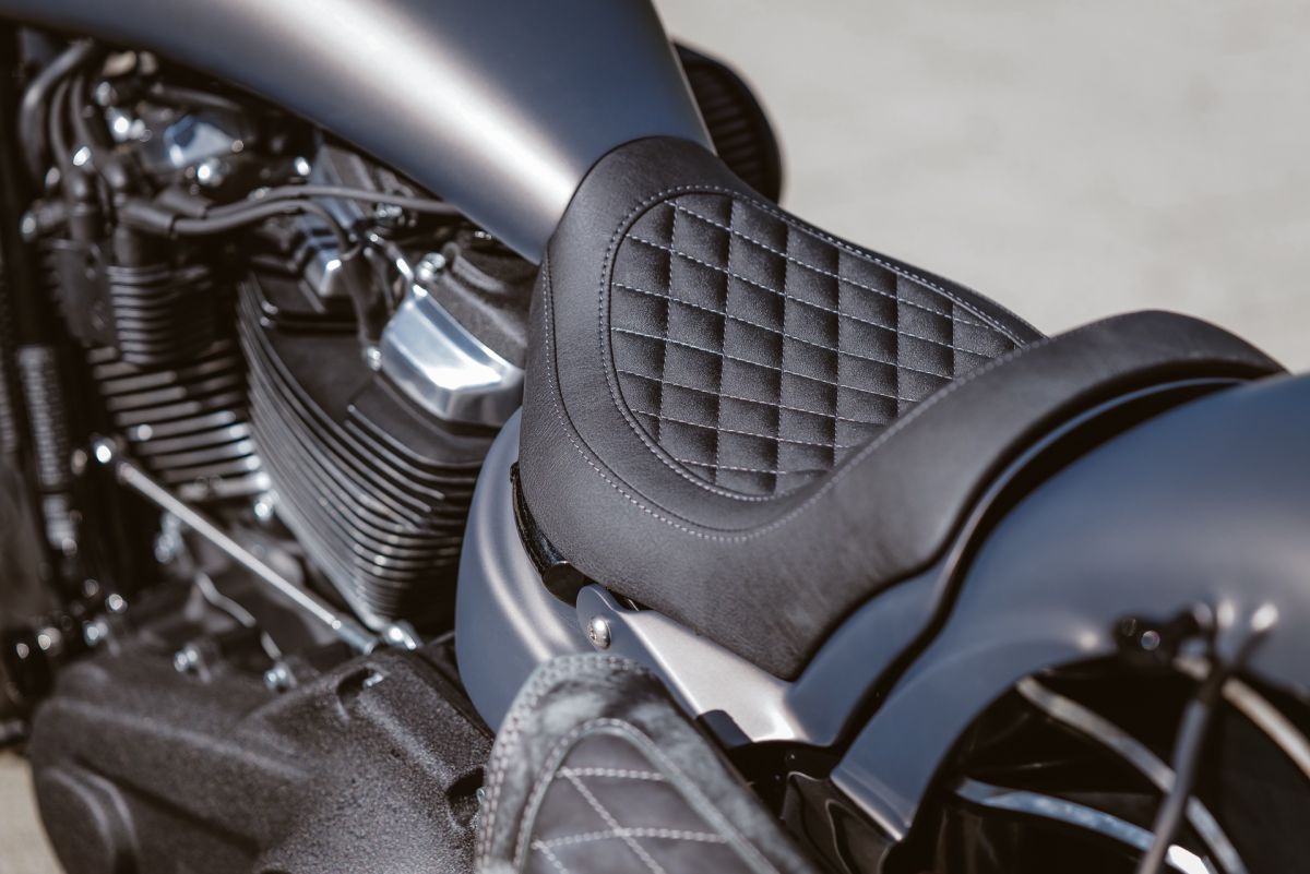 “Love and Respect” are the name of these Street Bob custom bikes, that you would consider to be identical twins. There are some significant differences you will notice when looking closer at the bikes. “Respect” was treated with a serious engine upgrade. The Kodlin S&S 124” big bore monster they have been using on a lot of their builds. You can’t go wrong with engine displacement manufactured by the industries performance leader, finessed at the Kodlin Performance Center in Borken, Germany. “Respect” also features a rear air-ride suspension, the ultimate mark in combining look and riding quality, forward controls and a high Kodlin Flowbar.