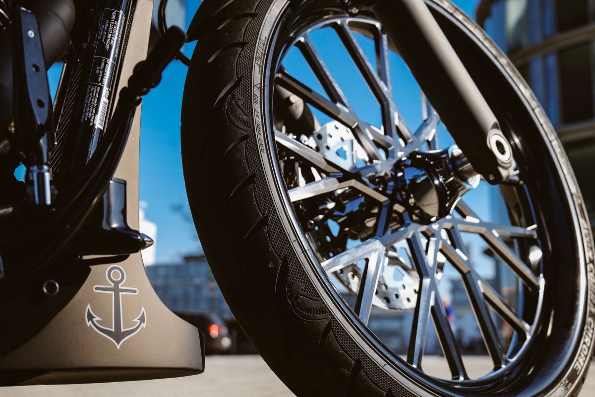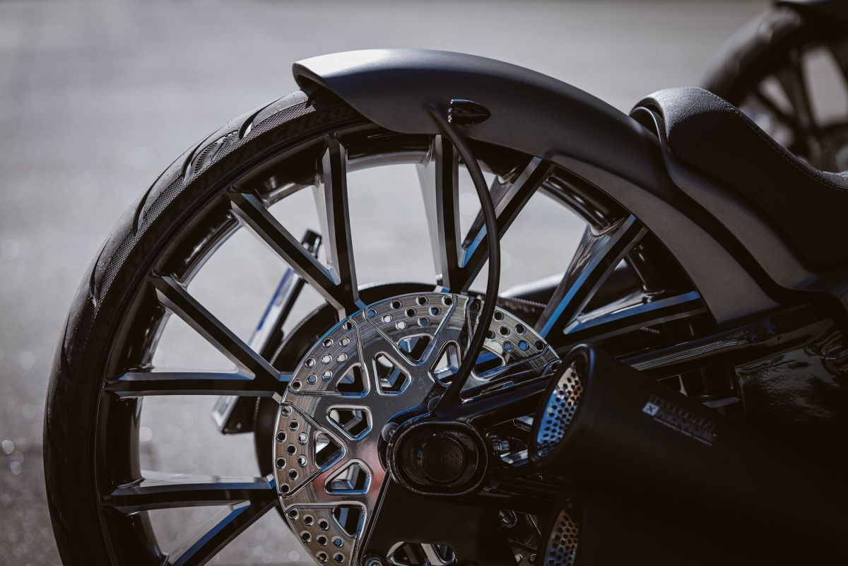 To compliment the extreme wheel, Kodlin designed a brand-new “Rigid-Style” fender that allows a minimalistic gap to the new Avon tire. They were looking for a new and improved method for the design that reduces the space between the seat and fender on these traditional looking rear ends. Also, the lengths of the swingarm and the gear ratio had to be adjusted to work with this larger size rear wheel. The result of these innovations left Marco and his wife Yvonne speechless. What do you think about this new trend?