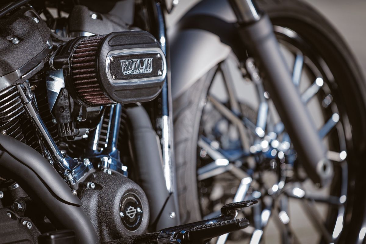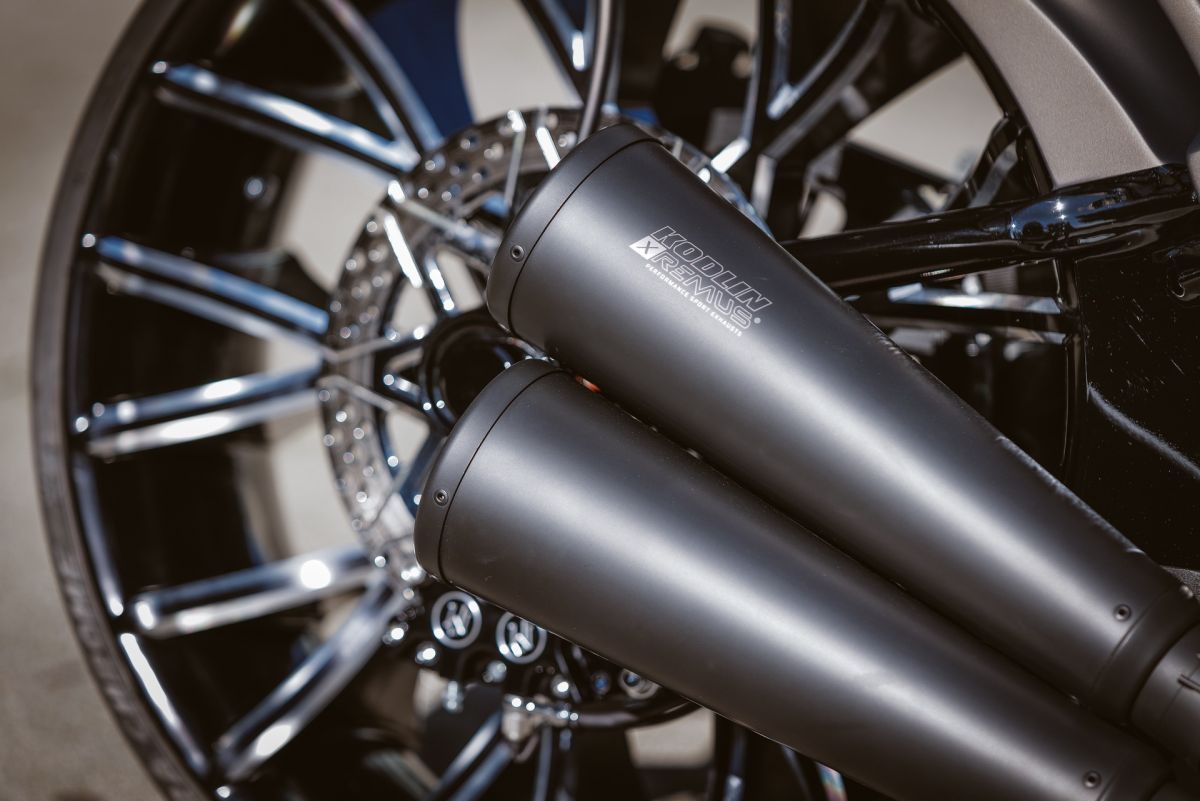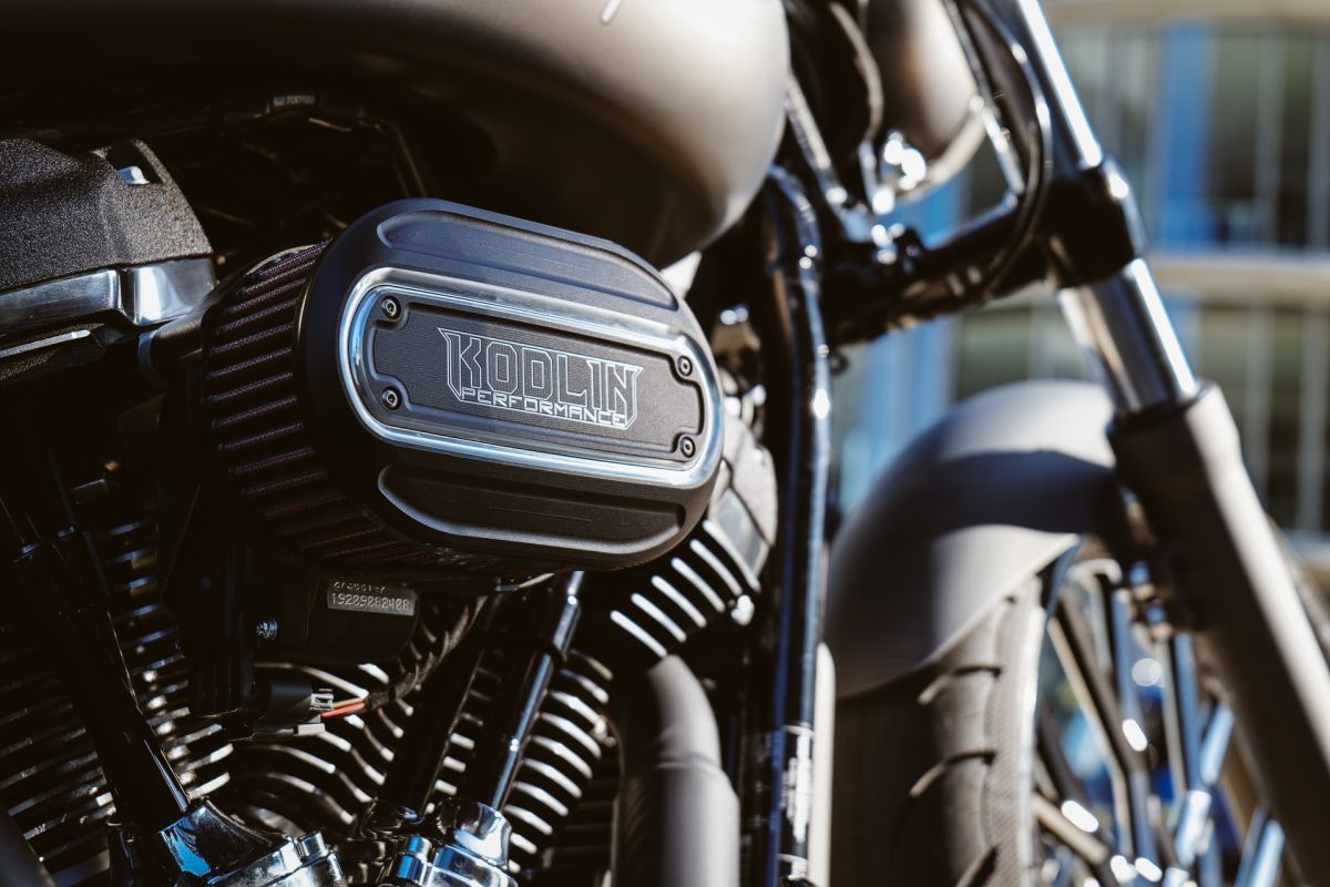 Both bikes are using the Kodlin M8 Softail Stretched Gas Tank, Kodlin Front Fender and Chin Spoiler, all made from the best steel you could get your hands on. To complete that look and the performance package, Kodlin installed their famous upswept performance exhaust on both bikes.
