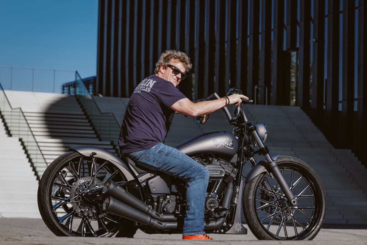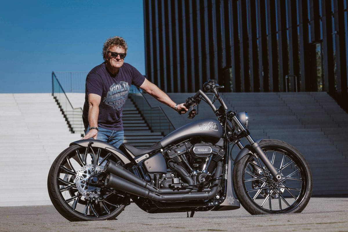 “Love” is using the stock shock configuration with the award winning Kodlin Lowering-Kit, mid Controls and a standard Flowbar for great handling of the bike.