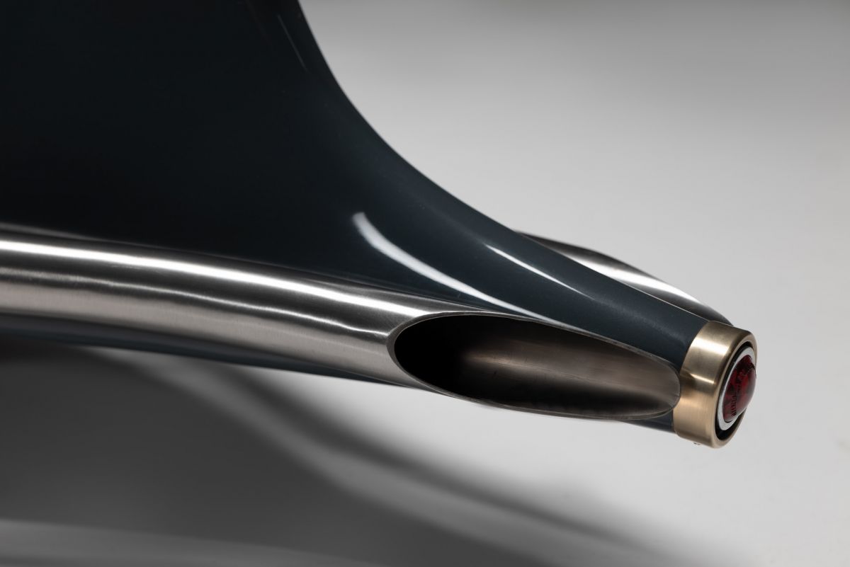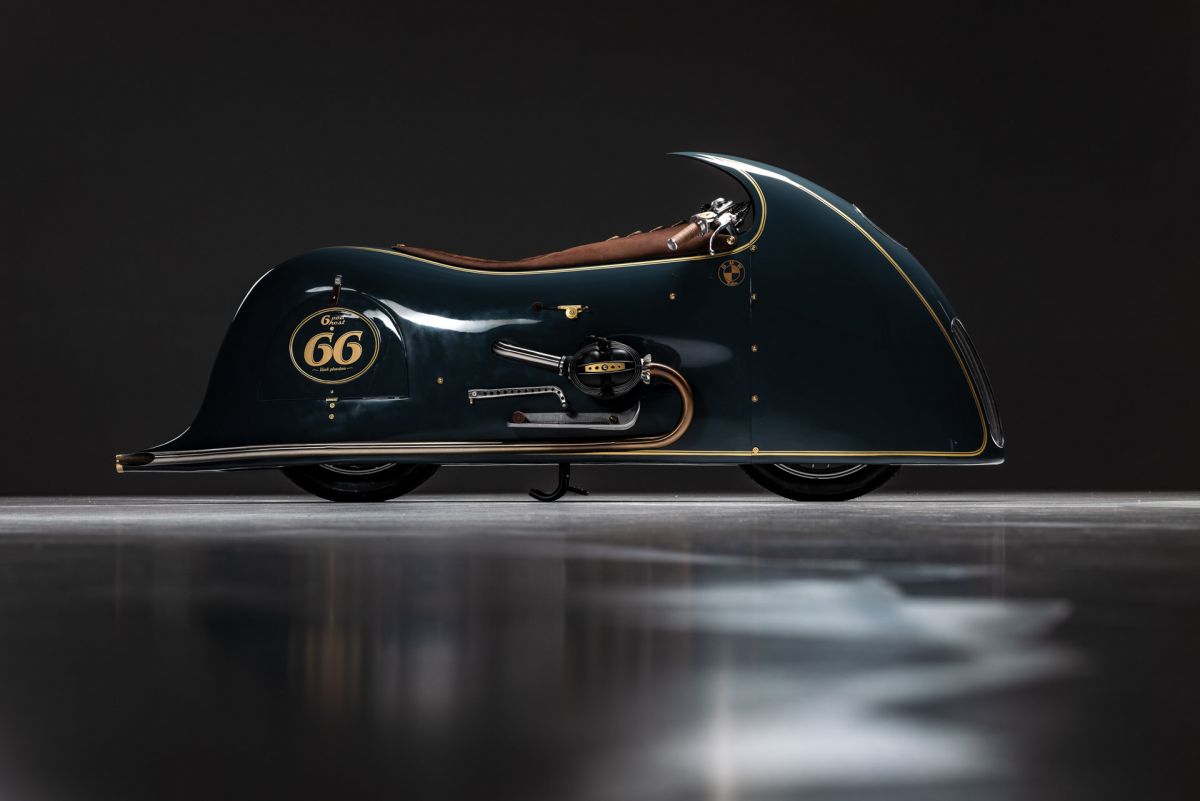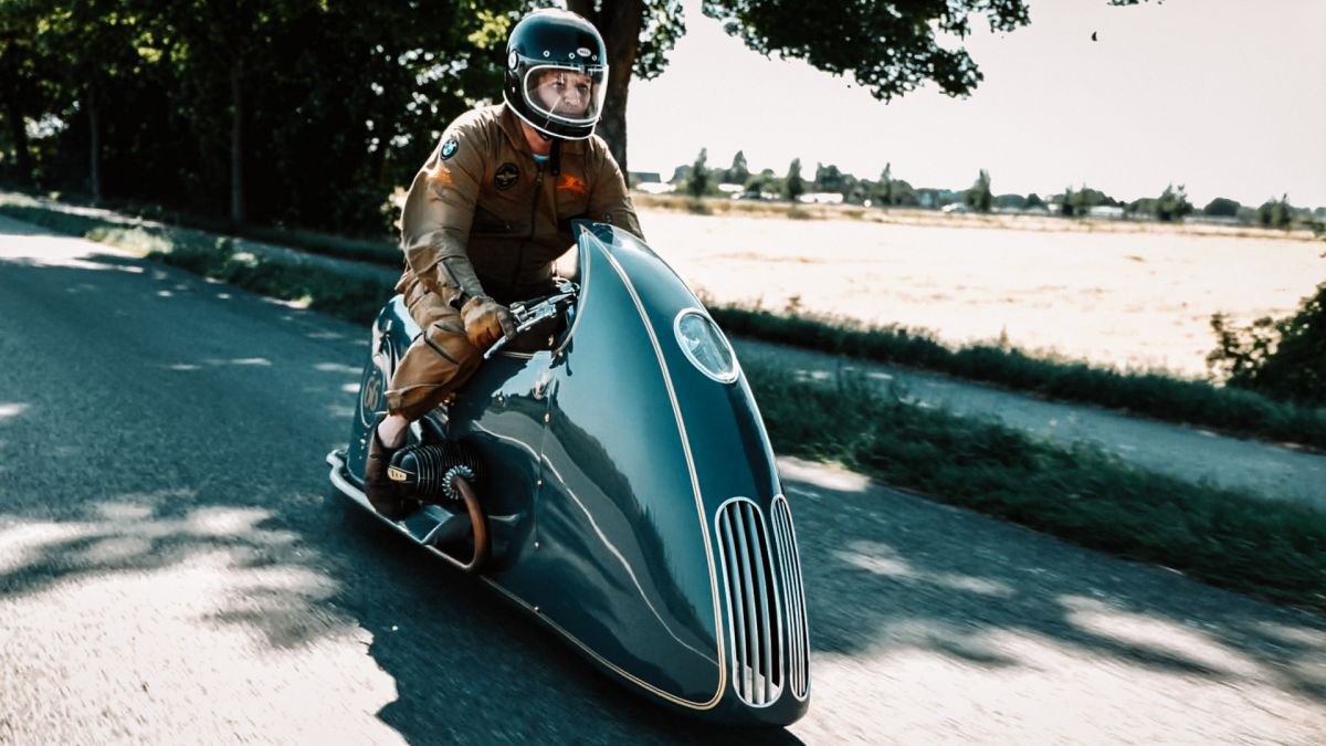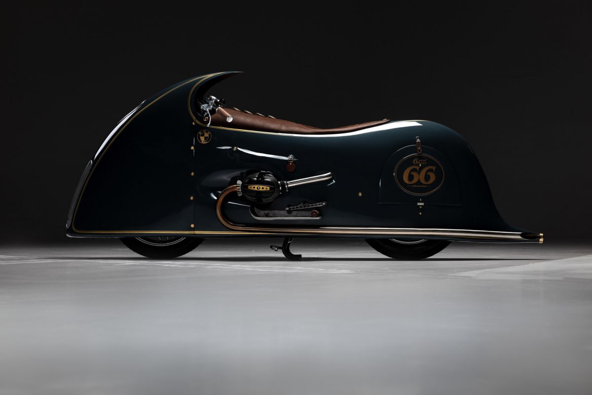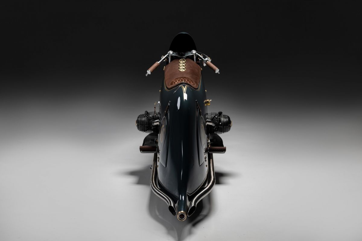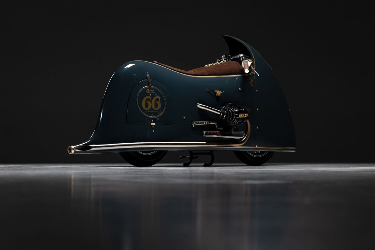 Ich begann, mit Drahtgestell und Tape eine Verkleidung zu bauen, die habe ich dann mit Pappe und Kleister beschichtet, so entstand ich Design und Style.Ich wollte nicht hinter einer Verkleidung im Motorrad sitzen sondern auf dem Motorrad reiten. Unter der Verkleidung habe ich eine Originale BMW R100RS versteckt, Rahmen und Technik alles Original, ich habe nur einen Monolever Dämpfer verbaut. Die Vergaser habe ich wie beim White und Black Phantom hinter der Verkleidung platziert Kingston Hand Made. Den Fuel Tank baute ich aus 2 mm Aluminium und setzte ihnunter Schwinge und Getriebe. Die Verkleidung ist komplett aus 2mm Aluminium und