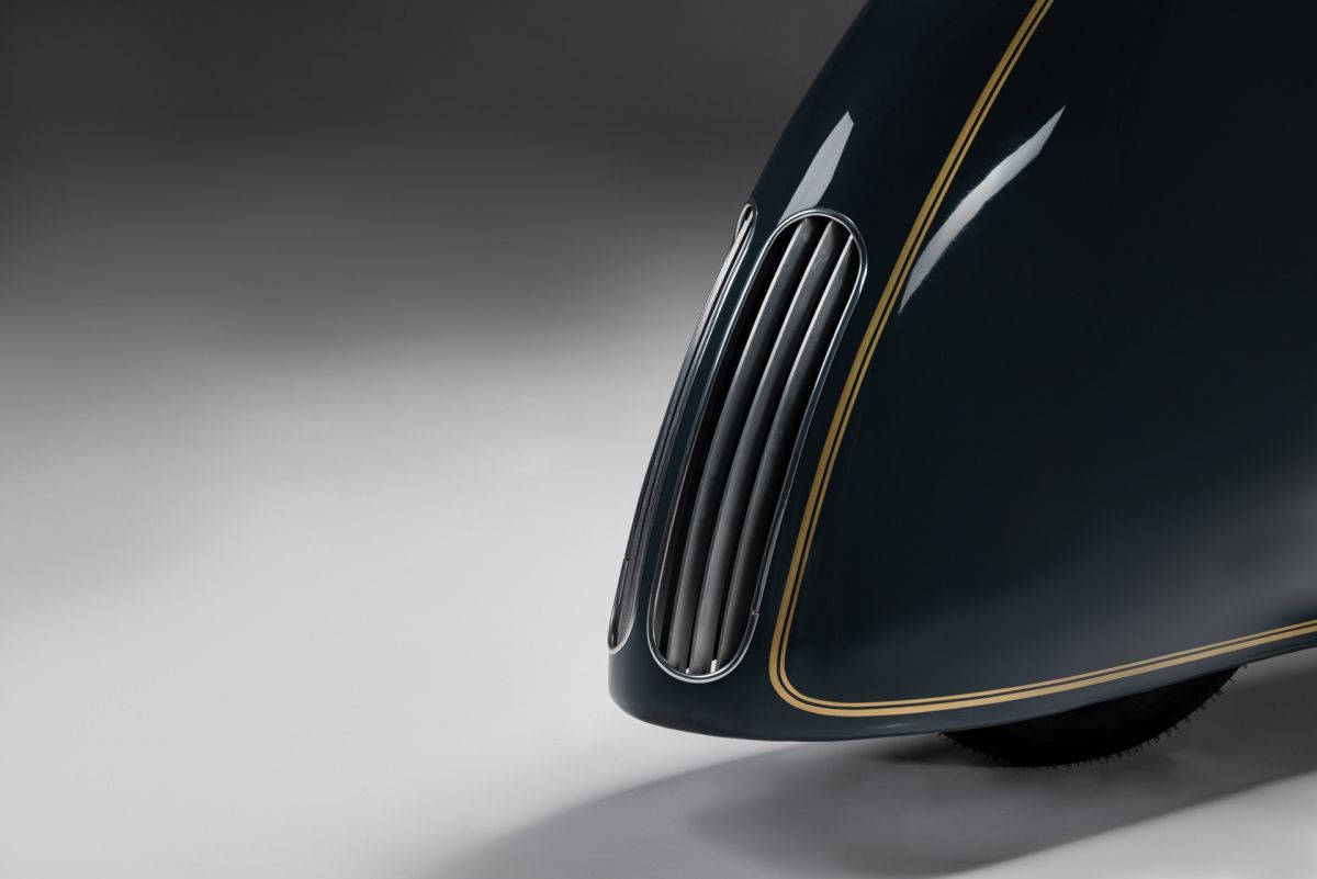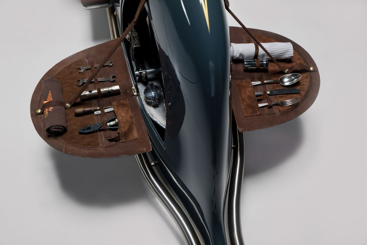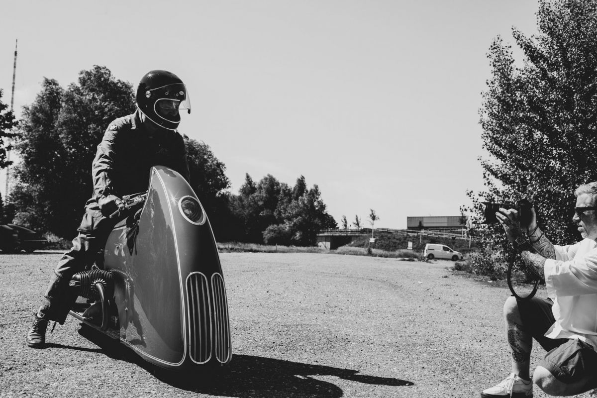 Der Beschützer sollte größer, schneller und stärker sein und mehr Hubraum haben. Es kam für mich nur ein Motorrad in Frage nur sie brachte alle Voraussetzungen mit, eine BMW R100RS. Der interessanteste, spannendste Teil meiner Arbeit war das Design. Einen Gentleman Racer so zu gestalten, dass es eine Trilogie ergibt, the Art of the Motorcycle